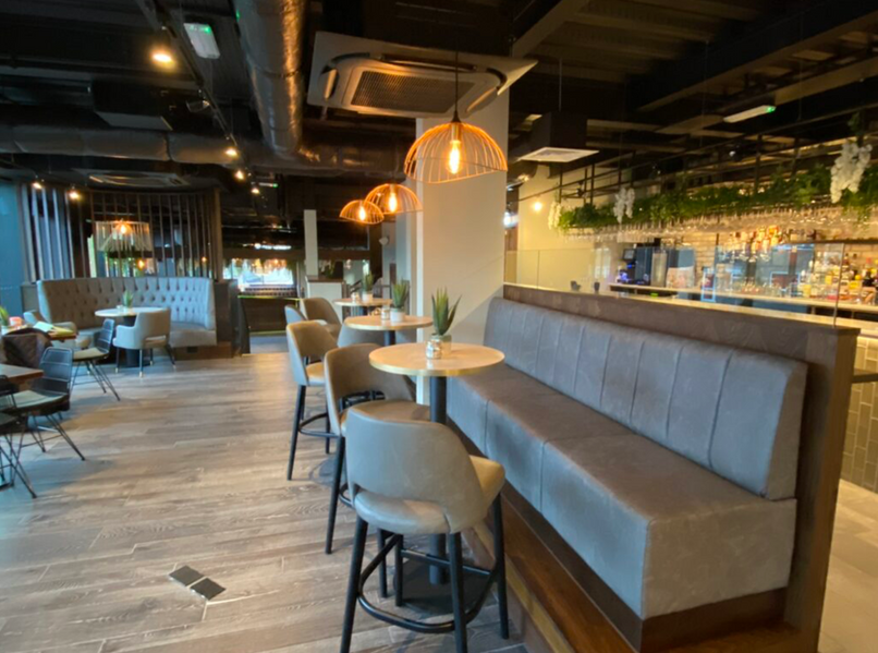 The ground floor boasts a vibrant, welcoming bar area, renowned for its expertly crafted cocktails, a hand-picked wine list, and an extensive selection of beers, ciders, and premium spirits. The bar interior design blends functionality with aesthetic appeal, offering a stylish yet approachable space for socialising.